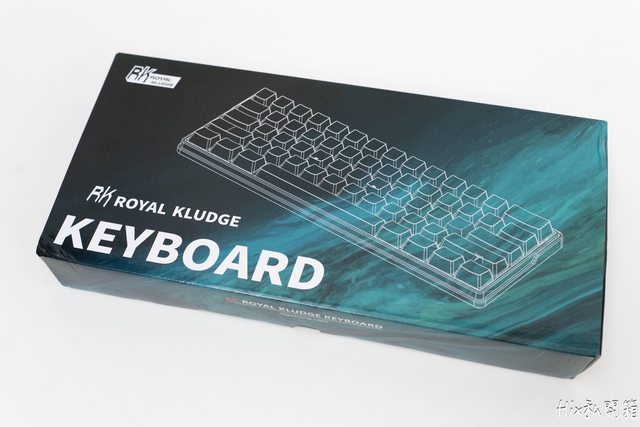 外盒十分簡約用白線勾勒出鍵盤本體,背景採用的是鍵盤本身的藍黑色系