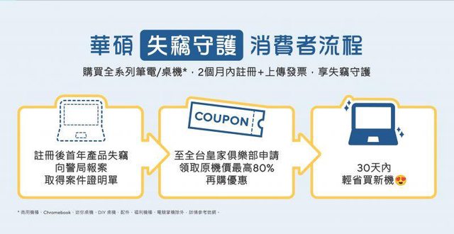 (首年一次全機種意外人損,華碩負擔80%維修費用),為回饋消費者的支持與肯定,今