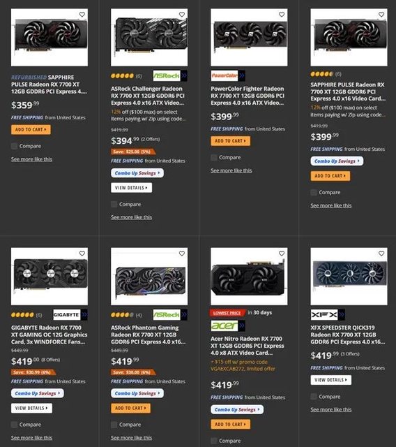 Sapphire、ASRock 和 PowerColor 等廠商的 Radeon RX 7700 XT 12GB 顯示卡都出現降