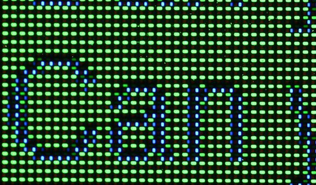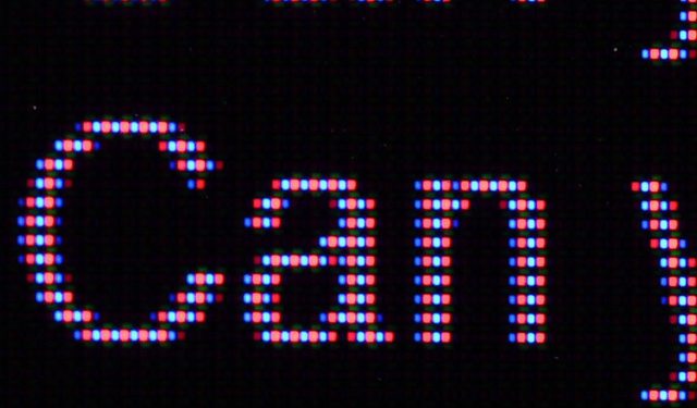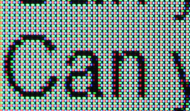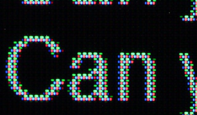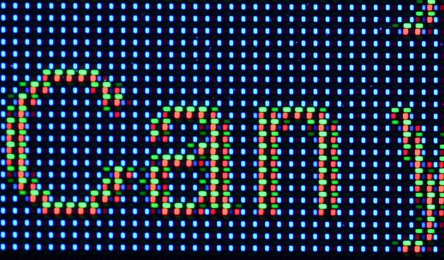 ▼QD-OLED面板顯示藍色底黃色字的影像如下圖所示