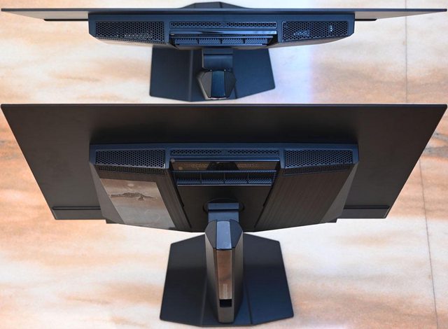 ▼螢幕背面下方左側有3.5mm立體音效輸出孔、HDMI 2.1輸入1、HDMI 2.1輸入2、