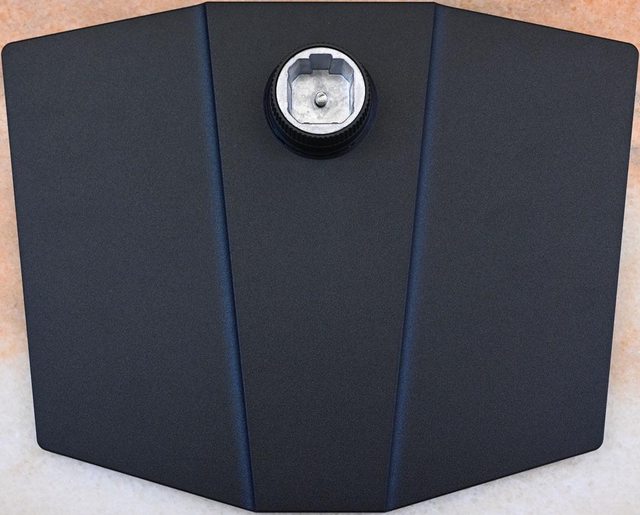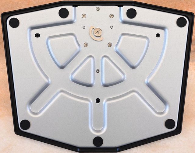 ▼可調式支架底盤正面,凸出部銀色方形孔用來插入直立桿