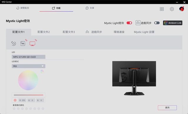 ▼MSI Center的Mystic Light燈效功能頁也會新增螢幕燈光控制
