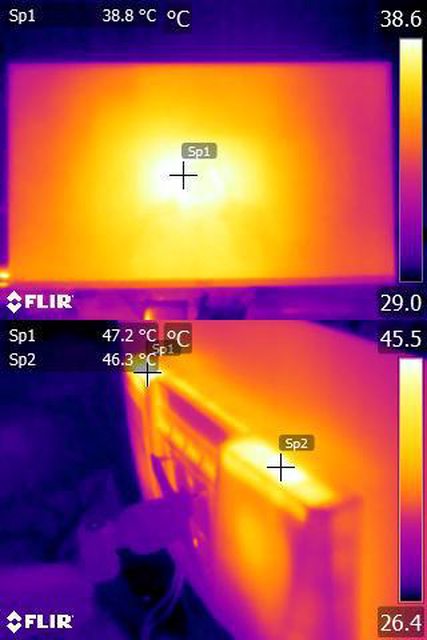 ▼預設模式連續使用1小時後的螢幕正面/背面紅外線熱影像圖
