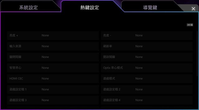 ▼Macro Key分頁可設定螢幕G.I.快速鍵的對應功能