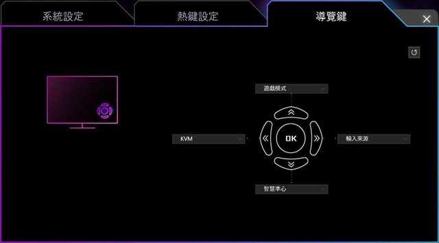 ▼導覽鍵分頁,可設定5向操縱搖桿往上/下/左/右撥動的對應功能。右上角重新整理按鈕