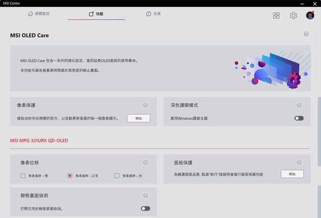 ▼連接螢幕與電腦間的USB線後,MSI Center也會新增MSI OLED Care功能頁,可執行像素
