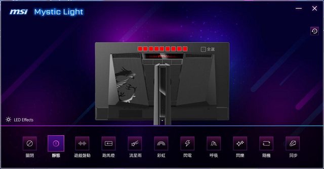 ▼MSI Mystic Light分頁可設定螢幕背面Spectrum Bar燈光