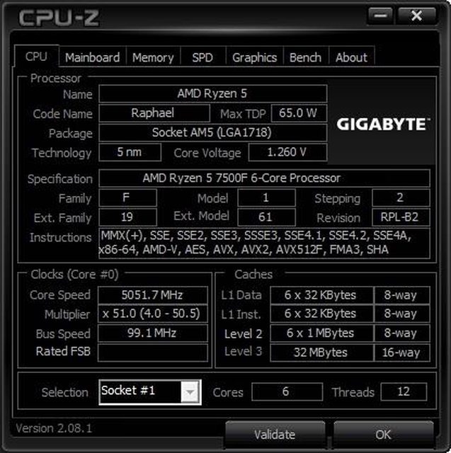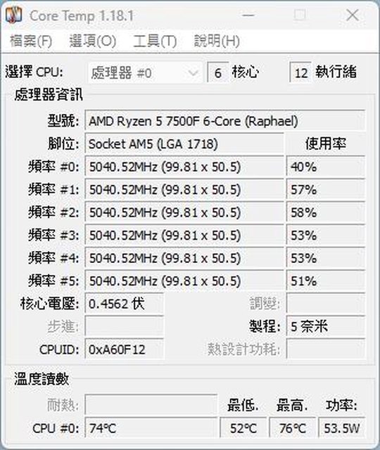 AMD Ryzen™ 5 7500F 小幅度OC 5.05G