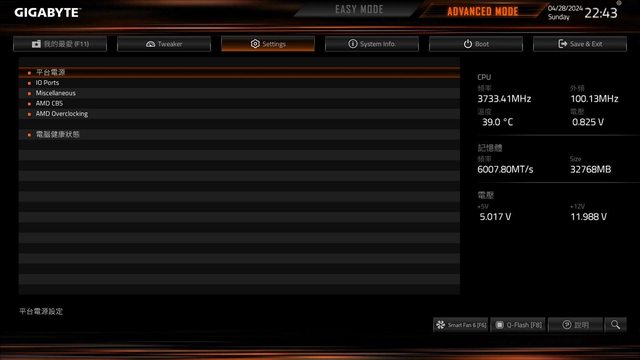 BIOS 介面跟 GAMING 系列的風格相似