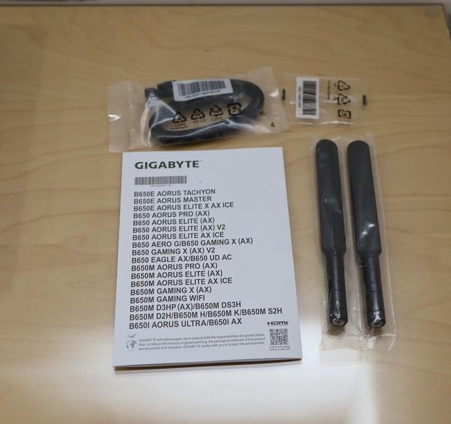 配件相當的簡單︰共板說明書、筷子型可拆天線、SATA 排線