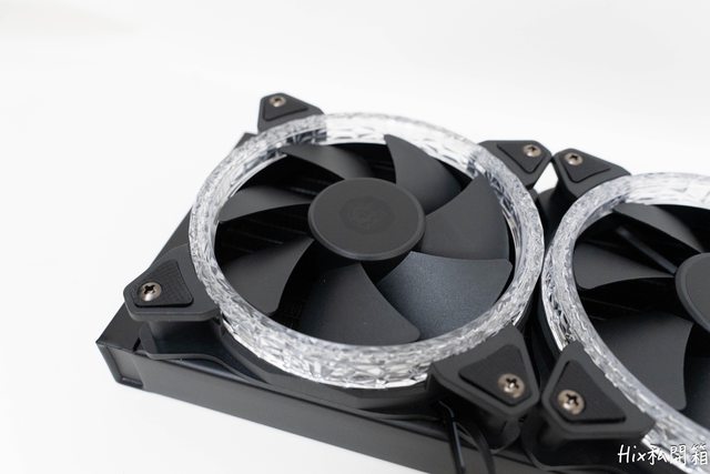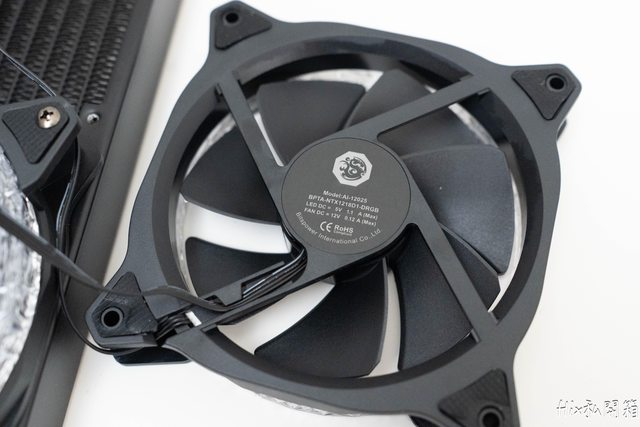 預裝好的風扇非軸向式,扇葉本身也非透光設計