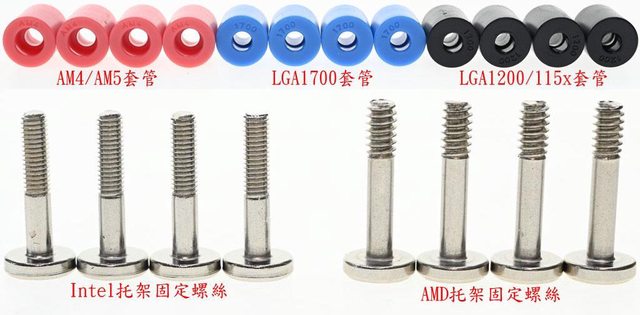 ▼AM4/AM5紅色套管、LGA1700藍色套管、LGA1200/115x黑色套管、Intel托架固定螺絲、