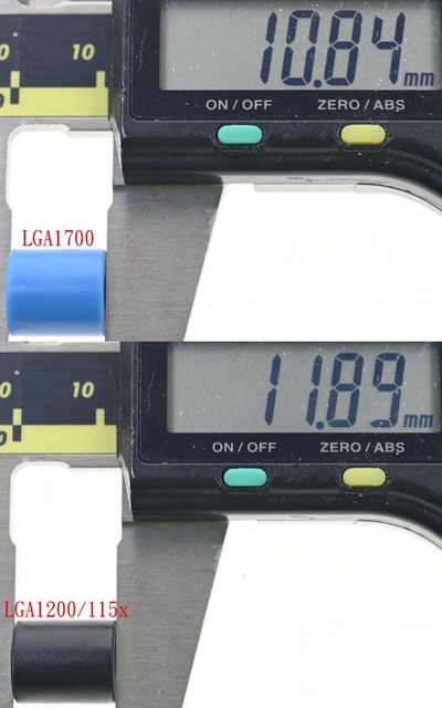 ▼LGA1700藍色套管(上)長度10.8mm,LGA1200/115x黑色套管(下)長度11.9mm