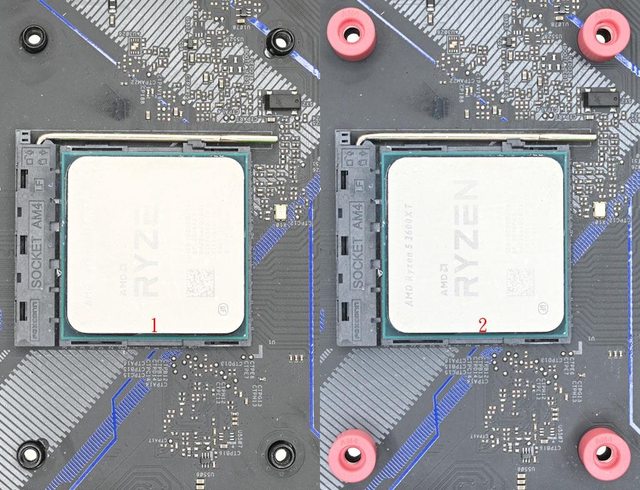 (1),將4個AM4/AM5紅色套管套進原裝散熱器背板鎖點(2)