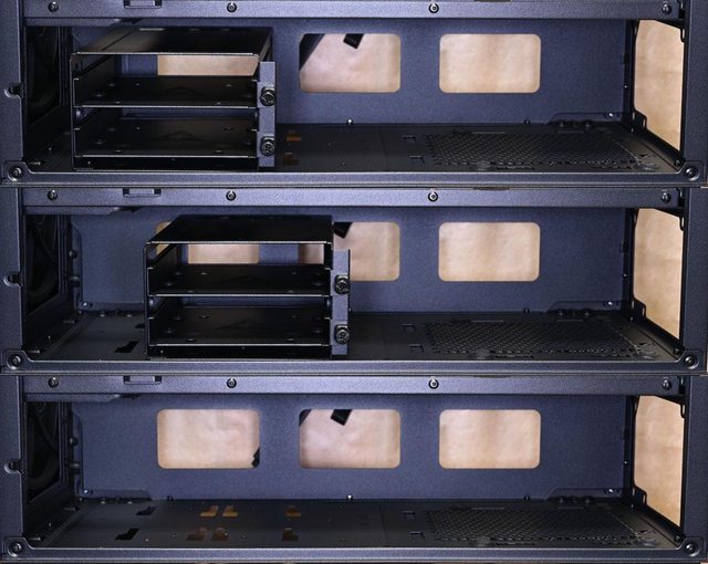 ▼底部3.5吋/2.5吋抽取式固定架具備2段安裝位置,不安裝時可獲得最大電源供應器安裝