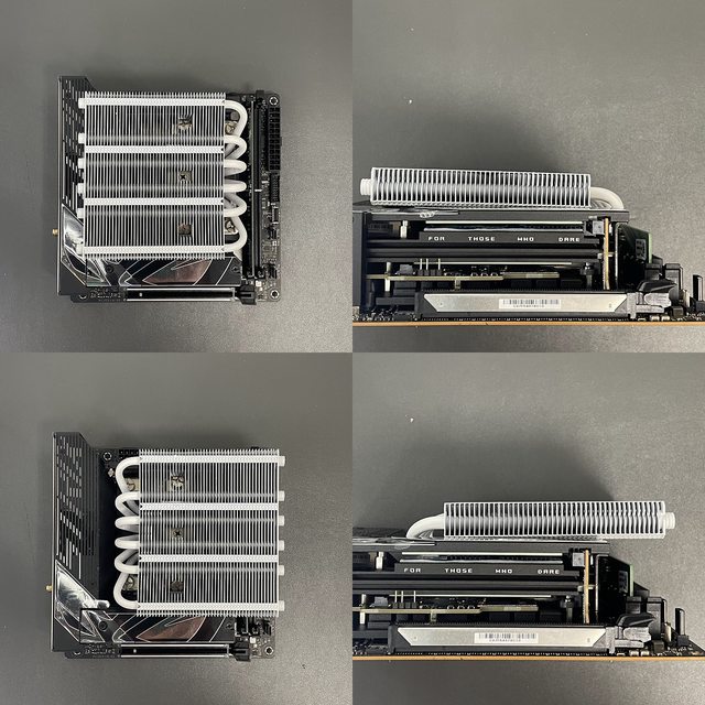 剛好intel和amd各一張,還剛好是同個建商,觀察熱管末端分別朝上下左右的情況。