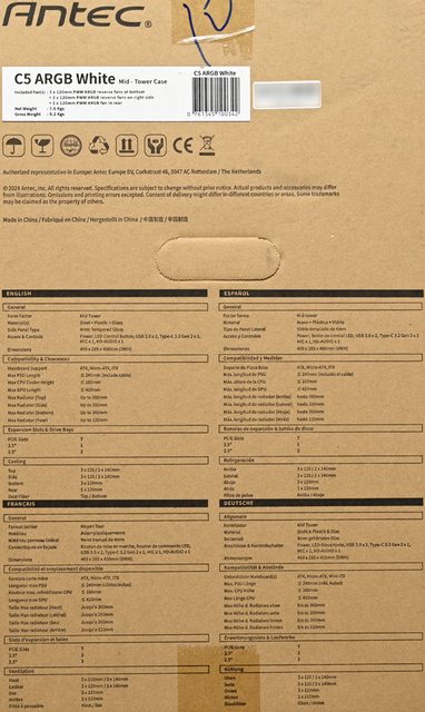 造日期、認證標誌。風扇PWM 4pin及燈光ARGB 3pin的接頭與線路均為白色