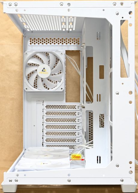 底部風扇安裝空間:3個120mm(預裝3個P12R 120mm PWM反向發光風扇)