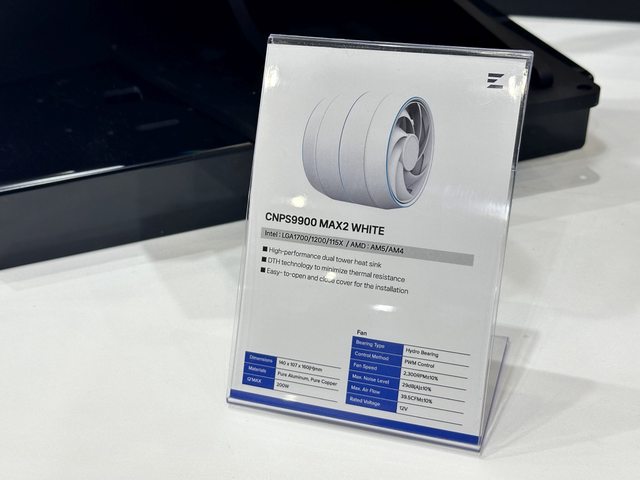 現場有看到兩種版本,都具有黑白兩色,CNPS9900 MAX2帶有ARGB燈效,高度160,標示解