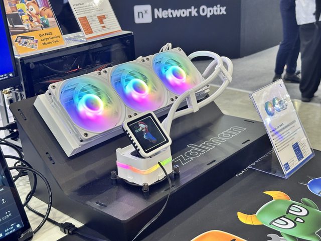 除了風冷外也有一體水冷產品,展示的這款可調整冷頭螢幕角度及自定義顯示內容。