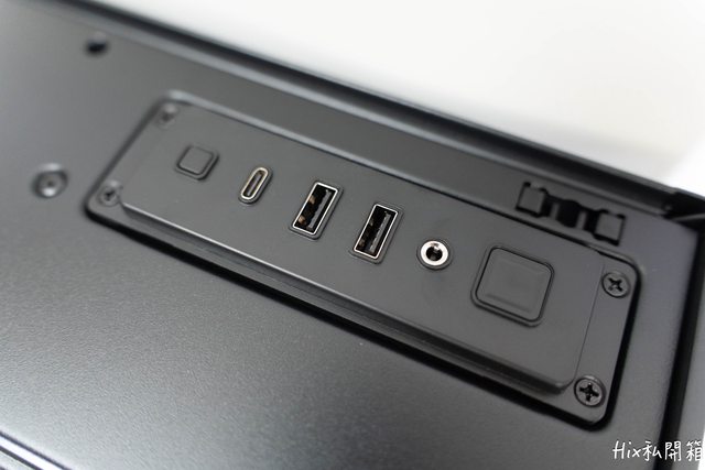 上方I/O依序為開機、MIC/HEADPHONE COMBO JACK、USB3.0*2、10Gbps的TYPE-C