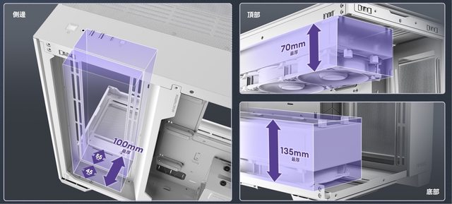 頂端的話則有6公分的空間供安裝冷排/風扇