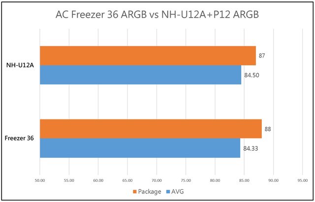 本次NH-U12A的對比測試為散熱器本體使用NH-U12A,風扇則與Freezer 36相同使用兩顆