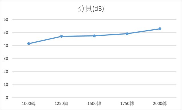 常用轉速的噪音表現(分貝儀離風扇5公分)