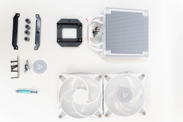 包含塔體、雙風扇、INTEL扣具、AMD扣具及散熱膏等