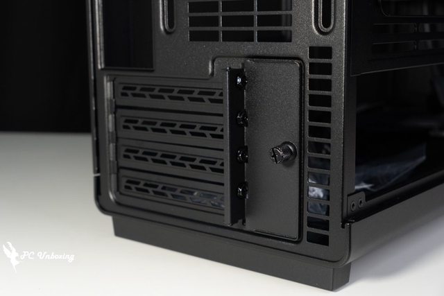 主機板背面側板也是全面積網孔側板,比較直觀的用途就是當電源供應器安裝在側面時,電