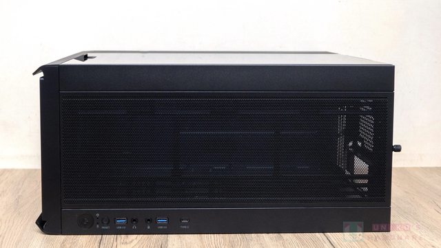 I/O 也全部設計在頂部,共有 USB Type-C*1、USB 3.0 Type-A*2、3.5 mm Mic*1、3.5 mm