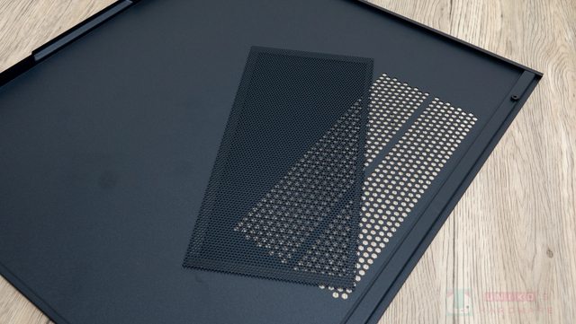 底部的電源供應器艙位下方是網孔設計,並附有防塵網,免工具即可拆除。另外一部分是硬