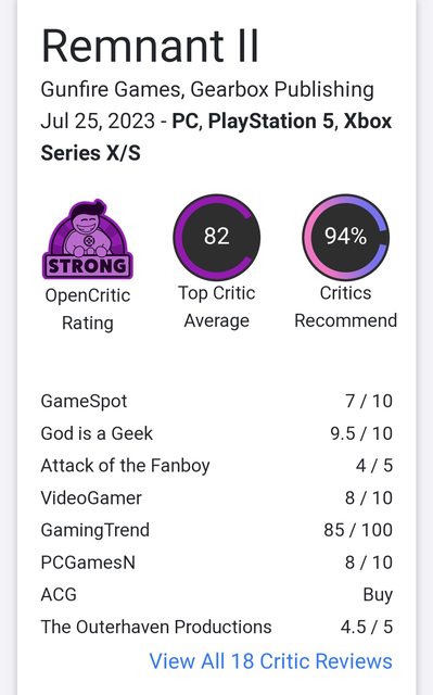 metacritic 的review不多所以只放OpenCritic, 目前21家媒體均分82分,還不錯的分數