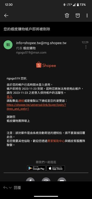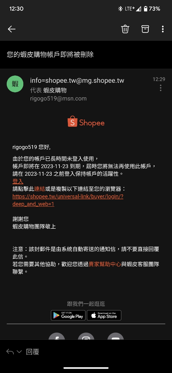 → Rigogo: 前幾天收到假蝦皮的08/30 13:01