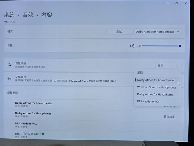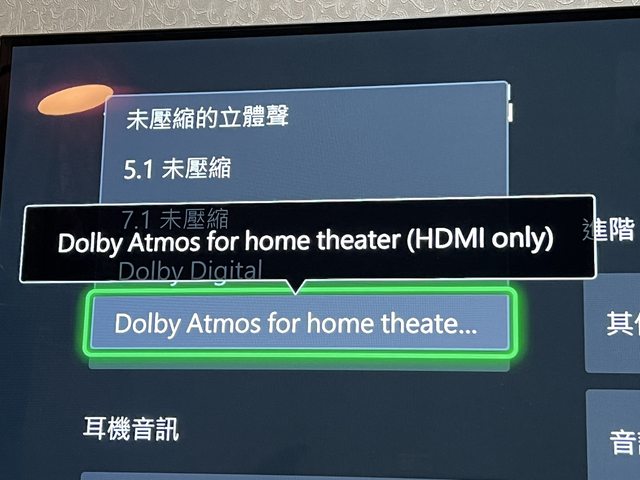 設定>聲音>聲音輸出>聲音格式選「Dolby Atmos」