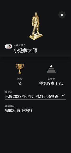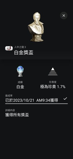 → FantasyNova: 人中之龍三我也覺得是所有系列白金最難的 10/20 11:32