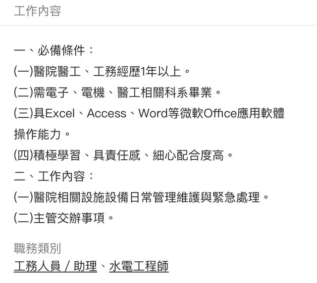 推 xyz4594: 醫院工務跟醫工是不同職位,應該是分開的喔03/21 16:35