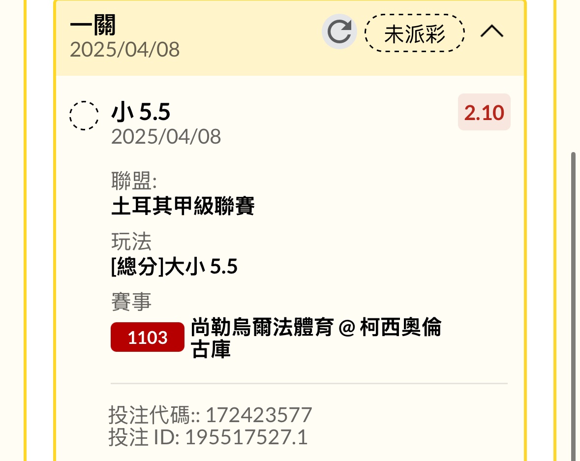 → reeed0116: 都沒什麼在踢,1.5大賠率還這麼鳥喔 114.39.21.75 04/08 19:42