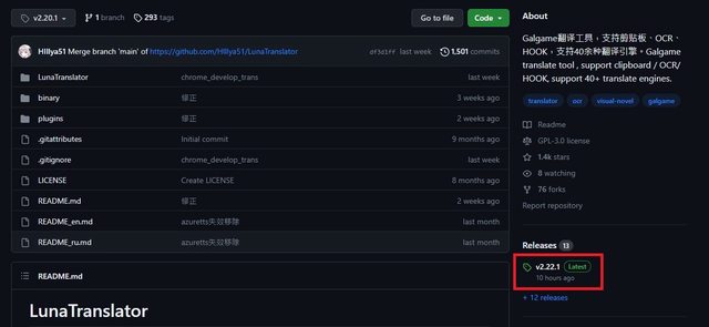 點進去後按這邊去下載,我都是下載第一個LunaTranslator.zip