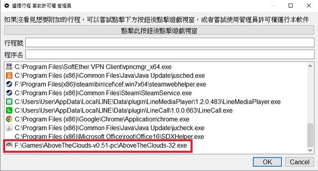 之後就會跳出這樣的畫面,選擇你開啟的遊戲按下OK