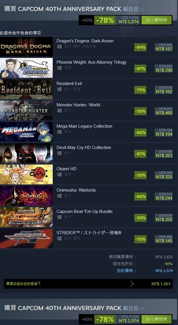 後來在卡普空40周年看到組包還蠻划算的打算購買