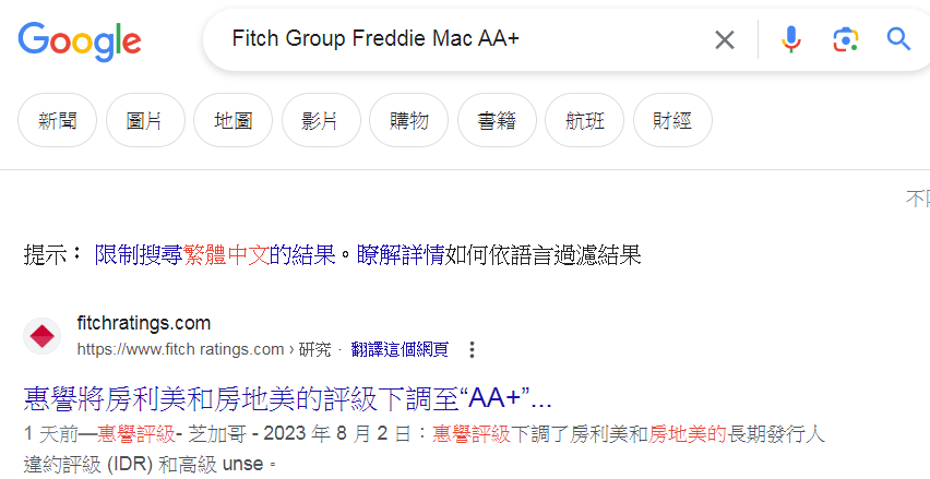 → laechan : 惠譽最近還降房地美、房利美 AAA->AA+ 08/04 13:43