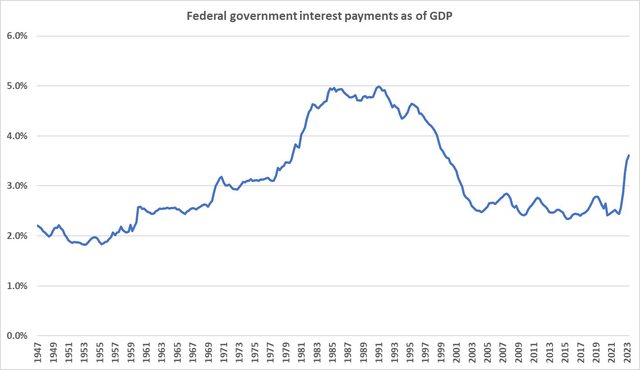 不過以聯邦利息支出跟名目GDP的比較