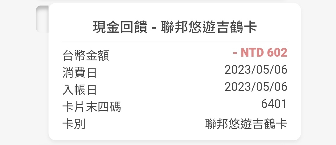 → jsaon159 : 固定出帳日是9號,這樣會6/9才看得見回饋?05/18 12:17