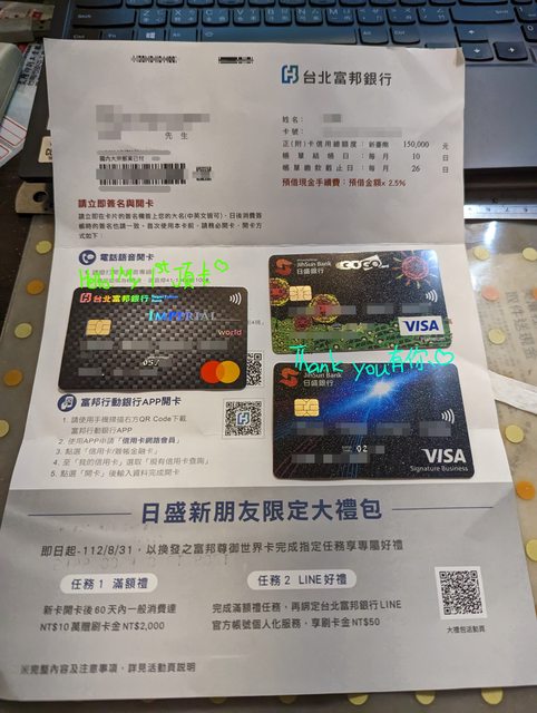 5/22(一) 收到日盛銀轉成富邦銀的尊御世界卡