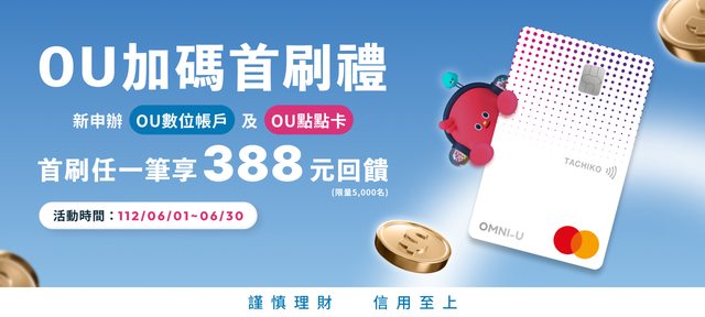 標題[情報] OU新戶加碼點點卡首刷禮388元