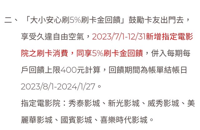 推 PAYPASS : 電影才5%不如用影城合作的信用卡還現折 06/25 20:56