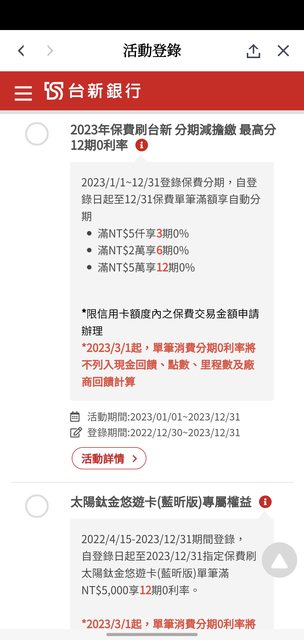 : 月底要繳壽險+醫療+意外險,前陣子看到台新卡保費最多可以分12期0利率,分期後還是