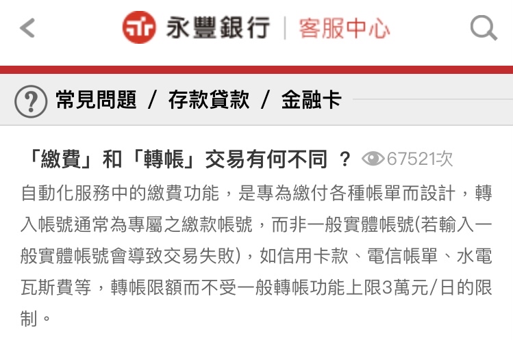 → iueeng : 他行繳費失敗是因為 轉出行銀行(繳費行)有每月轉 07/11 14:50